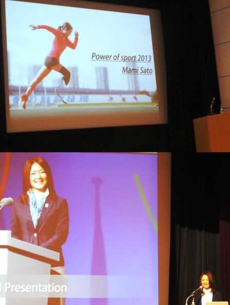2013年12月30日の大納会会場で、今回トライアスロンに出場する佐藤真海さん、今、谷真海さん、の姿を目の当たりにしています。