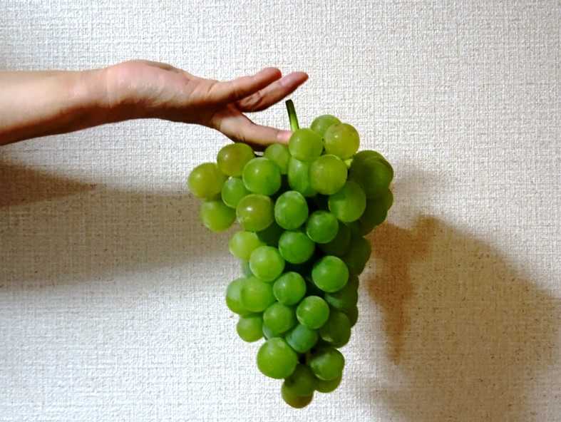 果粒は一粒8~15gと大きく、倒卵形で、果皮の色は明るい黄緑色をしていて、やや厚みがあり、果肉としっかりと付いているため皮が比較的むきにくいブドウです。