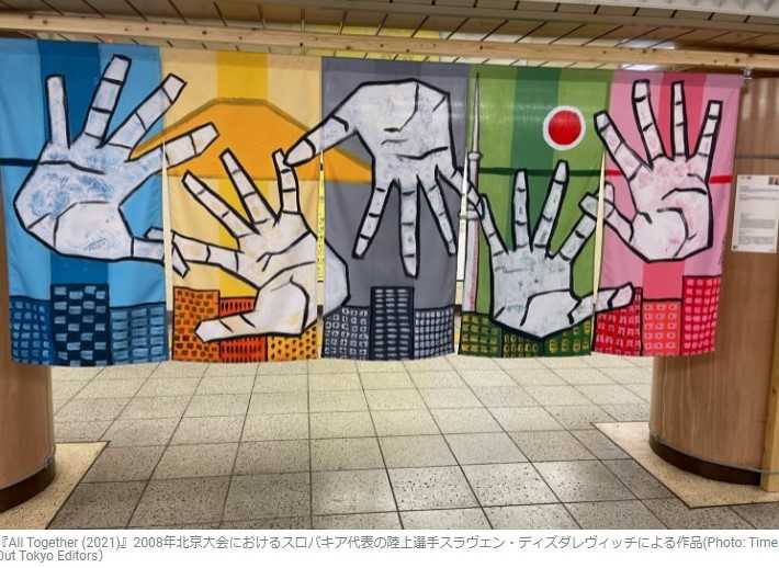 ここでは、「オリンピアン・アーティスト・イン・レジデンス Norenプロジェクト」と称して、6人のオリンピアン、パラリンピアンによる「のれん」作品が並んでいます。
