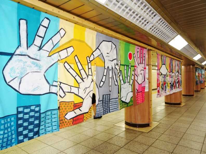 地下歩道を歩きながら独自のスタイルを持ったのれんを見ることができるので、地下歩道を回遊してアートな散策を楽しめます。