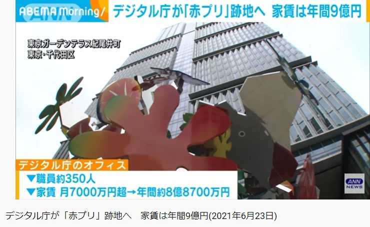 政府は18日、9月に発足するデジタル庁について、東京都千代田区紀尾井町にあった「グランドプリンスホテル赤坂」跡地の民間ビルに入居すると正式に発表した。国会や官公庁との近さなどが選定の理由で、年間契約額は約9億円。