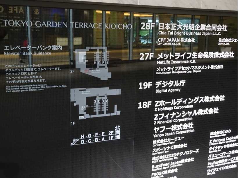 <デジタル庁はオフィス棟の19階と20階ですが、表示は19階のみ>