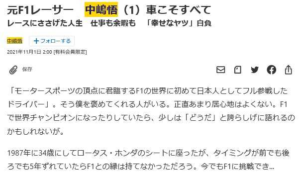 <■元F1レーサー 中嶋悟(1)<車こそすべて>中嶋悟 2021年11月1日 2:00 [有料会員限定]