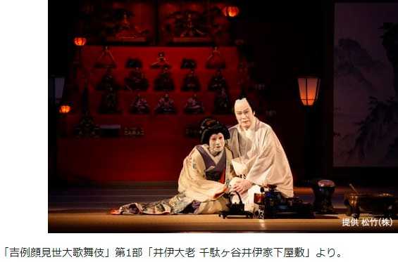 名作『井伊大老』から、桜田門外の変の前夜が描かれた「千駄ヶ谷井伊家下屋敷」。井伊直弼の愛妾である魁春演じるお静の方が、歌六演じる仙英禅師と、慎ましくも楽しく暮らしていた直弼との若き日を懐かしみ、深い思いを見せる。白鸚演じる直弼とお静が桃の節句の宴で心を通わせる場面では、春の雪が降るなか豪華な雛飾りの前で自らの苦悩を語る直弼の姿が、観る者の胸を打つ。直弼を支え続けたお静とのやりとりには情愛がにじみ、客席はすっかり引き込まれる。