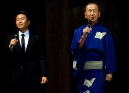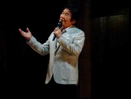 次は、日本歌手協会の会長・田辺靖雄さんです。「同期の桜」を、2曲目は「、二人の星をさがそうよ」、3曲目は、「夢であいましょう」、です。