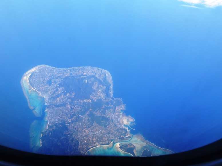 久々に見えた陸地は奄美大島、そして航路は南西諸島の西側にあって、徳之島、沖永良部島、沖縄本島などはまったく見えません。やっと見えてきたのは久米島。これを最後に着陸までは島は見えません。