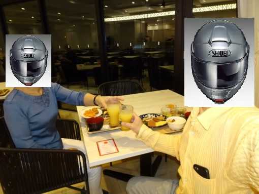 <レストランで朝食>