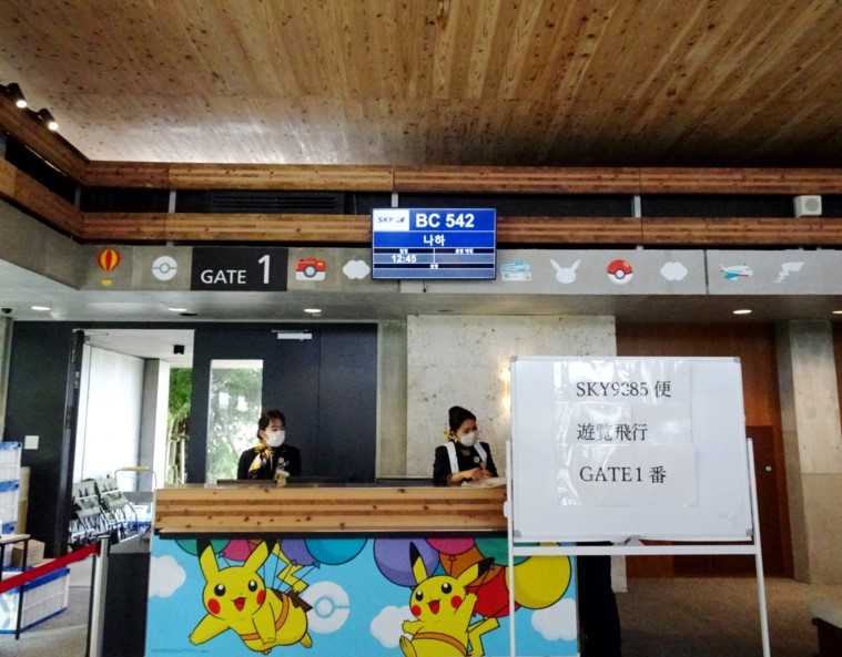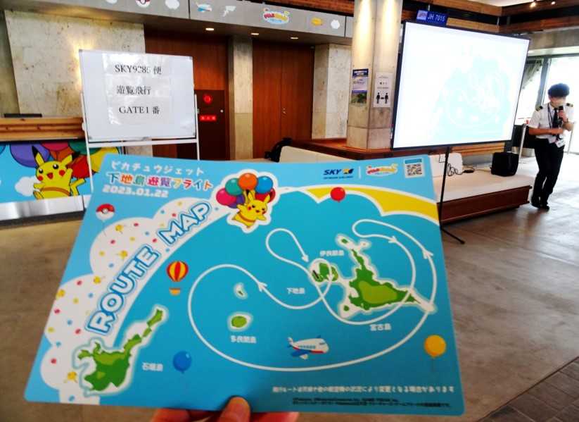 ピカチュウジェットは宮古島周辺の島々の上を飛んで戻ってくるのですが、通常の便に搭乗する時と同じ様に搭乗券を使って中に入ります。