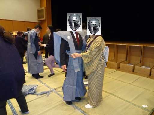 まず、受付で古式ゆかしき裃の「着付券」を貰い、着替え会場で、以前、上手に着せて貰った女性を探します。