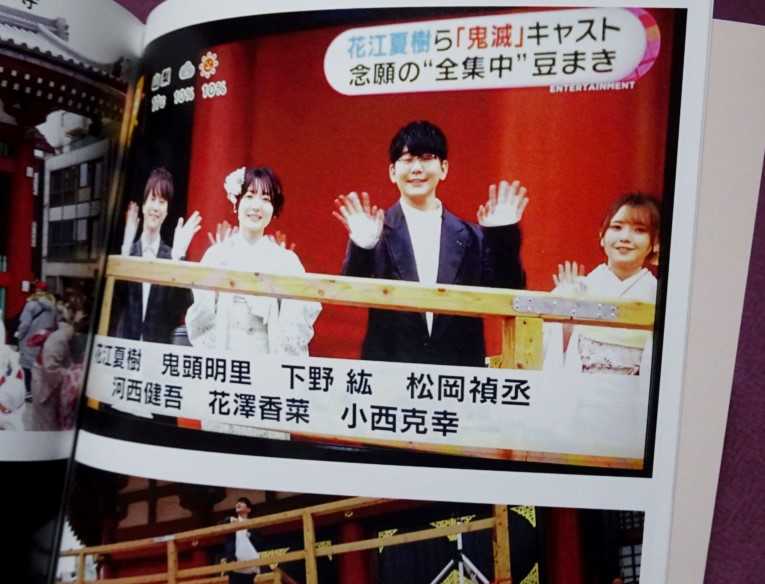浅草寺では、鬼滅の刃の声優<花江夏樹、鬼頭明里、下野紘、松岡禎丞、河西健吾、花澤香菜、小西克幸>、斉藤こず恵☆、毒蝮三太夫☆、アニマル浜口☆、M高史、林家正蔵、林家三平☆、松島トモ子☆、ファイティング原田☆、西尾夕紀☆、浜口京子☆、水谷八重子☆、三遊亭金馬、瀬古利彦、桂伸治、桂文治、木曽さんちゅう、