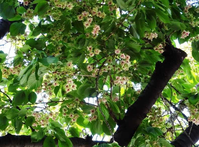 この時季、濃いピンク花を咲かせる八重桜は勿論ですが、十数年前にここで初めて知った緑色の桜「御衣黄」(ぎょいこう)も楽しみで、今年もみごとに咲いていました。