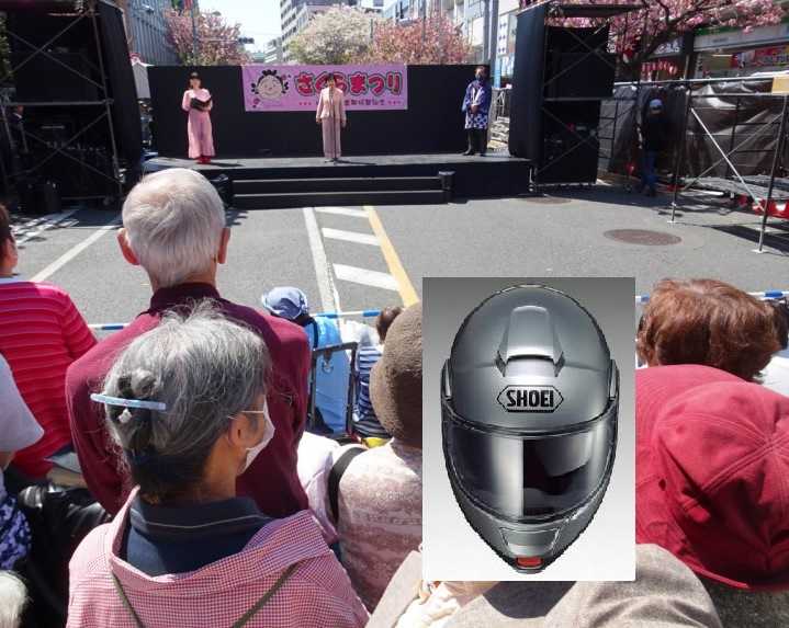 快晴の中、桜新町「さくらまつり」、屋台は行列、ものすごい賑わいです。