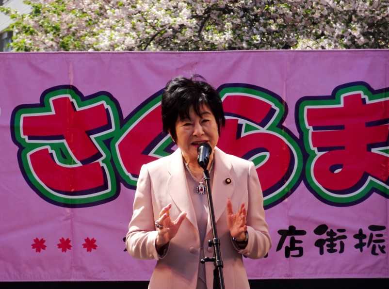 商店街、町内会の代表挨拶が終わり、山東昭子さんのごあいさつです。