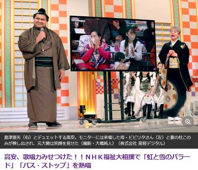 「お楽しみ歌くらべ」、次は、高安関と島津亜矢さんです。