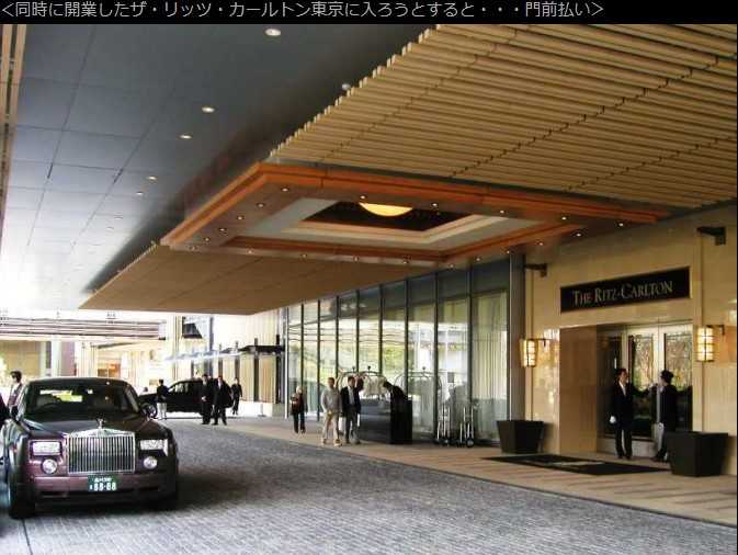 そして、同時に開業したザ・リッツ・カールトン東京を訪れ、コーヒーでも飲もうかと思い、中に入ろうとすると、ドアの前で、ドアボーイが「ご予約ですか?」と。予約していない旨を伝えると、即、玄関払いされ、玄関前のロールス・ロイス・ファンタムを眺めながら、ホテルを後にしました。