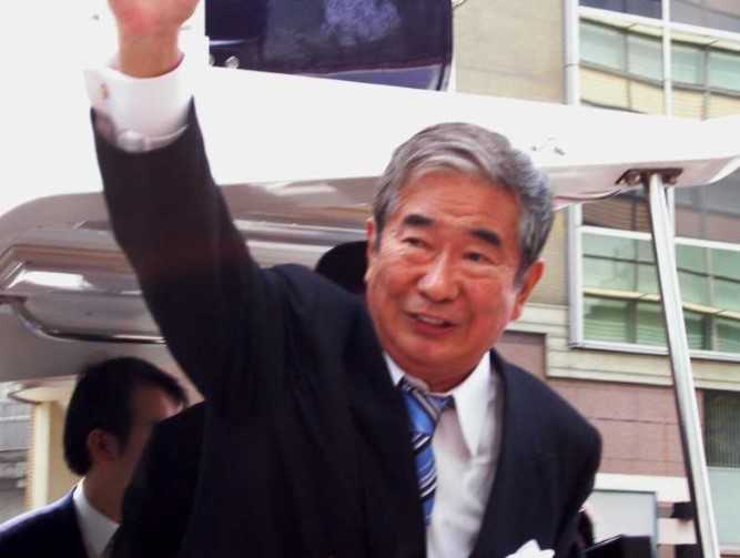 そして東京ミッドタウンを去ろうとすると、目の前に選挙カーが現れ、石原慎太郎さんが演説しています。