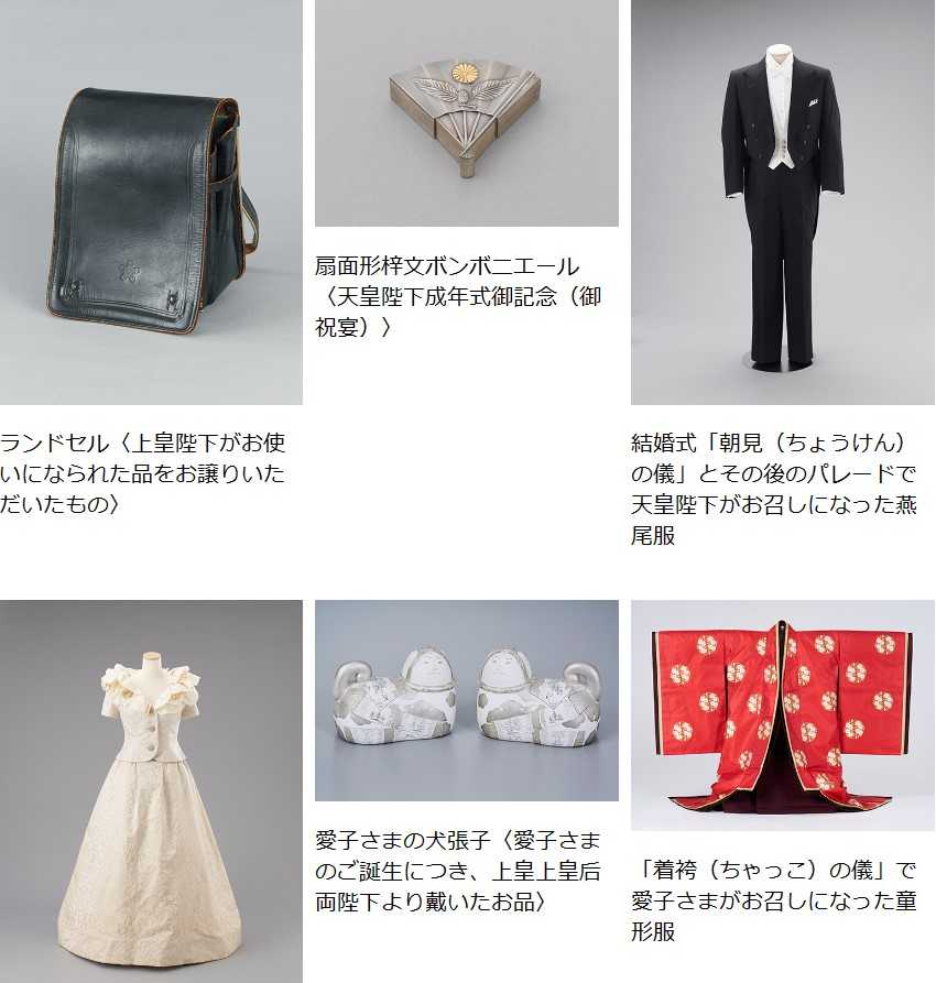 ご誕生、ご幼少時から出会い、そして御成婚から御即位、現在までの両陛下の歩みを、両陛下ゆかりの約100点の品や約150点にのぼる写真を通して見ることが出来ます。