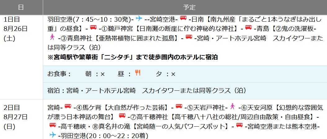 (補足情報)宮崎の絶景とパワースポットを効率よく観光!忙しい方もご参加しやすい1泊2日プラン!