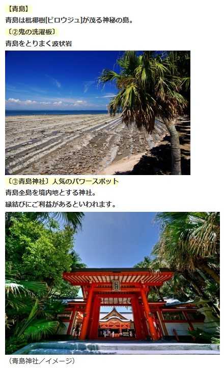 〔③青島神社〕人気のパワースポット:青島全島を境内地とする神社。縁結びにご利益があるといわれます。