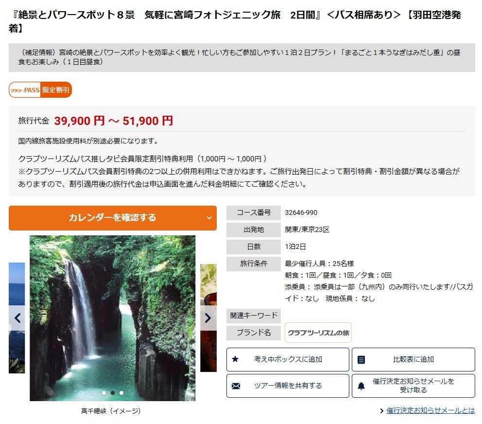 クラブツーリズムパス推しタビ会員限定割引特典利用(1,000円 ~ 1,000円 )