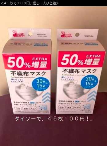 10年位前から、花粉症対策で、「ダイソー」のマスクを長年愛用していますが、最近、久しぶりに「ダイソー」へ行き、マスクのコーナーを覗いて驚きました。