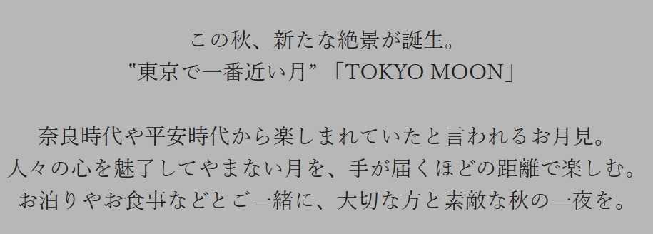 今回の目的は、庭園に浮かぶ満月、「TOKYO MOON」を楽しむことです。