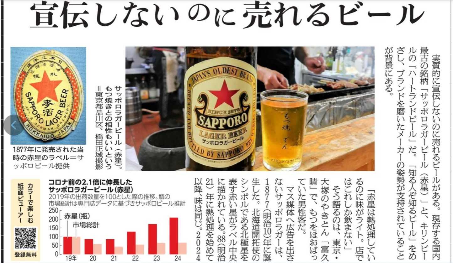 慶大大学院経営管理研究科、井上哲浩教授(マーケティング論)は「ハートランドは時流を追わずにビール文化を確立する必要があるという考えが消費者に受け入れられた。他方、赤星は北海道開拓使の精神を商品に反映し、守っている」とみる。「2銘柄とも消費者と料飲店がファンになって評判を広げ、知らぬ間にビール会社の『内部資源』になって商品拡大に貢献している。ブランディングの本質を示す事例だ」(橋田正城)