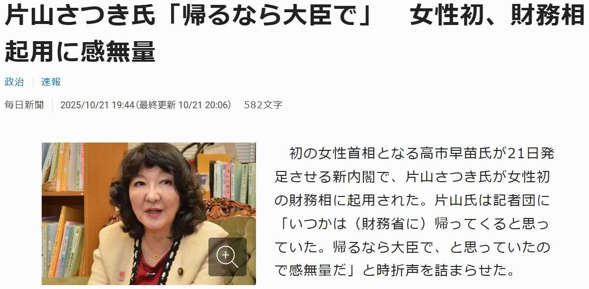 また、高市早苗総理大臣を推薦した片山さつき元国務大臣が、女性初の財務大臣に就任しました。
