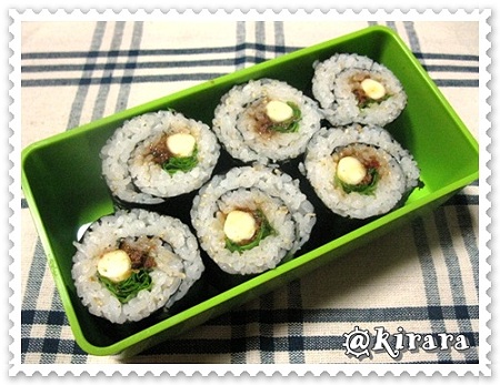 [料理] ブログ村キーワード[お弁当] ブログ村キーワード[モニター] ブログ村キーワード 「 ◆10.5 肉みそdeキンパ風のの字海苔巻♪ 」キユーピー具のソースうまみ肉味噌風----適量ご飯-------2膳くらい棒チーズ-------3本プリーツレタス-----適量海苔-------半畳3枚ごま油-------小さじ3白胡麻------小さじ2塩少々-----小さじ1/31)@ご飯にごま油・塩・白ゴマをまぜ冷ます2)@海苔半畳にご飯を1cm厚さで敷きのばす 3)@ご飯に具材棒チーズ・肉味噌・レタスの順に置く4)@端からくるくる巻くキンパ海苔巻は海苔にごま油を塗って塩・ごまを振ってご飯をのせると 私が見たレシピにはありましたがこの作業が面倒なので ご飯に混ぜてしまったのと本来の巻く物の具材ではないですがご飯にごま油・塩・ごまを混ぜているのでキンパ風のの字海苔巻ということに^^のの字海苔巻の詳しい巻き方はと同じです お弁当に 具材色々簡単のの字海苔巻きご飯昨晩 更新する予定でいたのですが昨日は楽しみにしていた長女部の河原でのいも煮会にでかけ帰りは夕方になったので道路も混んでいて片道45分が1時間以上もかかり運転疲れも重なって 昨晩は9時に(寝uωu*)☆ ォャスミ遅れに遅れて 4・5日のお弁当の紹介です「 ◆10.4 ひじきご飯の弁当(長男)♪ 」「 ◆10.4 ひじきご飯の弁当(長女)♪ 」お弁当メニューひじき煮混ぜご飯 チーズかつ 肉味噌のれんこん挟み焼き 照り焼き餃子バーグ(餃子の具で作ったハンバーグ) 焼きそば ポテサラ プリーツレタス・ミニトマト りんご テストだと言うのに前日まで東京に遠征テストが始まって翌日もテストなのにテスト終了後 遠征に持っていた荷物の片付けだとさ~普通にお弁当を持って行きました普段よりは早く5時電で帰ってきましたが。。。「 ◆10.5 肉みそdeキンパ風海苔巻(長男)♪ 」「 ◆10.5 混ぜ込みおにぎり(長女)♪ 」お弁当メニュー長男肉味噌deキンパ風のの字海苔巻 鮭フライ 餃子 春雨の中華サラダ 大根と牛蒡の煮物 竹輪といんげん炒め プリーツレタス・ミニトマト 巨峰 長女混ぜ込みおにぎり(長女)混ぜ込み梅しそわかめ混ぜ込み若菜混ぜ込み昆布わかめ 大根と牛蒡の煮物⇒ 大根と牛蒡の煮物(おふくろの味1) inuyashaこの翌日もテストなので12時過ぎに帰り駅までの道のりで食べるチャリ弁ですブログランキングに参加していますいつも 訪問・コメント応援ありがとうございます♪ブログ更新の励みになっています^^ 【ランキングバナー】⇒myレシピブックの今日の足あとをポチッてぜひ見に行ってくださった足跡を残してください後ほどこちらからもお邪魔させてくださいね♪♪◇モニター情報 混ぜるだけで本格健康つくだ煮が簡単にできちゃう「お母さんの智恵袋」モニター 募集国内産いりこやかつお節、昆布、ごまを特製のたれで混ぜ合わせるだけでだれでも簡単に本格つくだ煮が作れちゃう、魔法の商品「お母さんの智恵袋」!家族の健康を考える、忙しいお母さんにピッタリのつくだ煮です。数年前 旦那の姉から頂いて食べて(こちらのメーカのではなかったですが)とっても美味しくて その後もリピで送ってもらったのですが2年前ころお店で売らなくなって。。。ともう一度食べてみたくて~
