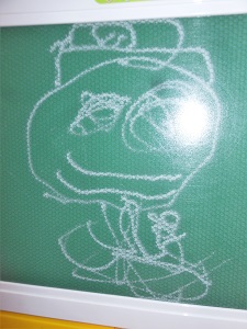 娘(3歳2か月)が、絵を描いた。「見て、ガラピコ!」うん、分かる!雰囲気出てる!