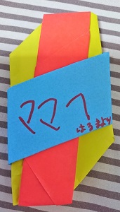 今日、息子(小学校3年生)が学校から帰ってくると、今日作った折り紙を出した。「ママ、これあげる。見て」「あ、上手だね。自分で考えたの?」「うん、適当に作った」3つに分かれた。黄色は手紙折りになってた。分厚いから開けてみると、結晶と、はちまきをした動物が出てきた。今日は、今年初のプールが2時間あったんだけど、中止。その代わりにいろいろやったみたいだけど、少しの時間、折り紙、お絵かき、本読みのうち、好きなことをして良い時間があったみたい。その時間と休み時間を使って作ったとか。