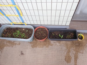 金魚草の植え替えの時期に来た。4日に息子(小学校3年生)が植え替えしたんだけど、なんか、駄目だったんじゃないかな?と思ったんだけど、やっぱダメだった。https://plaza.rakuten.co.jp/imoimoco/diary/201706040000/土日にもう1回やってもらおうと思ったら「ママやって」って言うから、今日やってみた。土ごと運ぶときに、根っこが出てきちゃったりして、また、駄目だったらどうしよう???って状態。先週、息子がやった時よりは良い状態だけど、ビミョー。。。これで失敗したら、今度は、一度水をあげて、土が落ちにくいようにしてやってみようかな?【金魚草】5月7日 種を蒔いた5月15~18日あたり 発芽。5月19日~25日あたり 葉っぱが増えた。6月4日 植え替え プランターに3個、植木鉢に1個×26月12日 植え替えやりなおし プランターに3個、植木鉢に1個×2