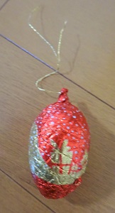 今日は娘(幼稚園年長)の英語のクリスマス会。クリスマスの歌を練習したみたいで、前からよく歌ってた。今日は帰りにチョコを1個もらって帰ってきた。初めにみんな、これをツリーに飾って、最後に貰って帰ってきた。おやつあればご機嫌の娘は、嬉しそうだった♪