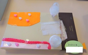 今日は、土曜日の作品展で飾ってた個人製作「おはなじま」を持って帰ってきた。拗ねてなかなかやらなかったからシンプル。アイスの入れ物で木を表現して、ハートで花を表現。何を使うか分からないから、ありえないくらい大量の材料を持って行ったけど、シンプルに終わらせて、大量の材料も持って帰って来てる(^^;