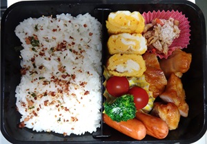 高校は、月曜日に入学式、火曜日は午前だけ、水曜日から午後までになってる。午後になるの早くてびっくり。お弁当かコンビニで買っていくか食堂に行くかの選択肢があるけど、初めから学食行く勇気がないから、お弁当を持っていった。クラスは、1人以外みんな昼食を持ってきてて教室で食べたらしい。最初はそんなものかな?パパも、学食に行ったのは途中からだって言ってた。ってことで、今週は3日間お弁当。冷凍食品色々買ってきたから、冷凍食品多いと思う。4月10日(水)4月11日(木)4月12日(金)