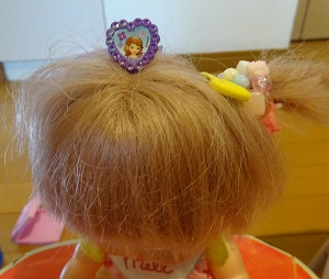メルちゃんは、紫系のアクセサリを使ってお姉さんっぽく。