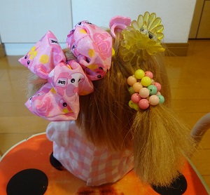 ネネちゃんの要望は、丸いビーズのゴムを使って、子どもらしく可愛く。