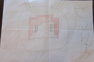 私の作ったレゴを見て描いてた。