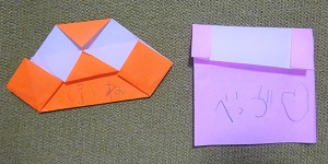 で、折り紙でふねとベッドも作って入れた
