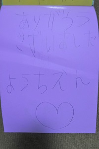 クラスのみんなでカードを書いてまとめたときは、やる気なくて、
