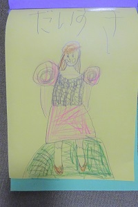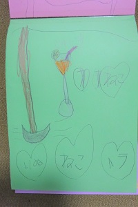 今日、体操教室に行く時に渡したいからって、午前中に色を塗って仕上げた。