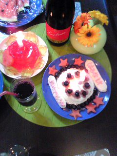 私と主人はワインでハルチャンは葡萄ジュースで乾杯してHAPPY BIRTHDAYを歌いました
