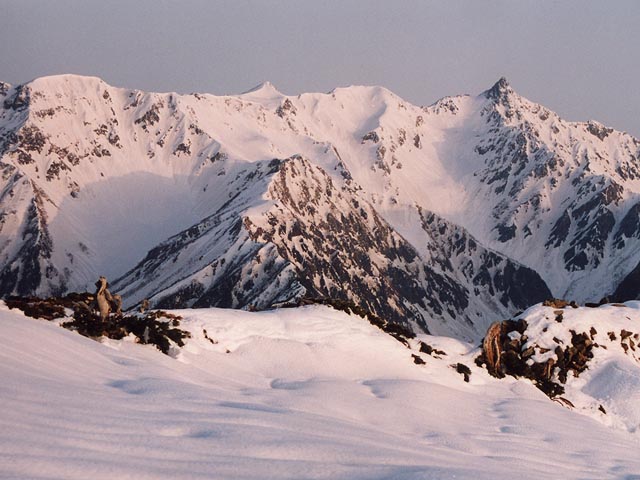 ゴールデンウィークに行った徳本峠(「とくごうとうげ」と読む)の写真がやっとできました。5月3日、6時半頃河童橋付近から穂高連峰を撮りました。有名なアングルですね。私自身、この位置から何枚写真を撮ったことか・・・・・・反対側には焼岳。今日も噴煙が上がっています。上高地から明神までは1時間かからないくらいの行程です。登山者の大半は、ここから更に徳沢→横尾→涸沢へと向かうのですが、私は梓川沿いの道を外れて徳本峠へ。明神の標高は、上高地とほぼ変わらない1500m程度、徳本峠は2100mほどなので、標高差600m。比較的楽な行程です。徳本峠への登りの途中で撮った1枚。左のギザギザの峰々が西穂高岳、それより高い中央部が奥穂高岳、右端の、一番高い(ように見える)鋭鋒が明神岳です。実際には、明神岳が一番手前なので一番高いように見えるだけですが。実際の標高は、西穂高岳2908m、明神岳2931m、奥穂高岳3190mですから、中央の奥穂高岳が一番高い。ところで、2月に登った西穂高独標(頂上直前で引き返しましたが)が、この写真に写っています。どこにあるか分かるでしょうか。左端の小さなピークです。同じ場所から、明神岳のアップです。徳本峠に着きました。テントを張って、まず1枚。西穂高独標が豆粒のようだ。西穂高をアップにしてみました(実はこれ、2日目に撮った写真です)。左から雪の稜線をたどっていって、最初のピークが西穂独標です。やっぱり小さい。今回、望遠レンズを持たなかったので(だって、荷物をあまり重くしたくなかったので)、ズームレンズの望遠側は85mmしかなく、たいした望遠になりません。同じ写真を拡大してみました。右端が西穂高岳本峰の山頂。左端が独標です。小さい、実に小さい。私が引き返した地点は、雪の稜線がピークの手前で気持ちへこんでいるところです。文字どおり山頂直前。とは言え、西穂本峰から見れば、遙か手前ですけど。あ、もちろん無雪期なら西穂独標は簡単です。もちろん私も登ったことがある、というか独標を超えて一つ先のピークまで行きました。参考 2月に撮った西穂独標の写真近くで見ればこんなに大きく見えても、西穂高本峰と比べれば、こんなに小さいわけです。初日は徳本峠に着く頃までは良い天気だったのですが、そのあとだんだん天気が悪化し、3時過ぎには吹雪になってしまいました。(積雪量はせいぜい数センチでしたけど)もちろん視界もなし。そのあと夕方に天気が回復して、雲が多いながらも穂高連峰が遠望できました。この分なら明日の朝は期待できるかなと思ったら、穂高連峰方面は天気が良いのですが、肝心の大鵬の方向に雲が厚く、モルゲンロード(朝焼け)は見られませんでした。初日に霞沢だけ方面に途中まで登って引き返したので、2日目は大滝山方面に向かってみました。しかし、1時間ほど歩いたところでトレースが消えており、それ以上進むことは断念しました。ずっと樹林帯で視界はない。トレースが消えた地点は小ピークになっていましたが、針葉樹の高木に囲まれているので、視界はあまりききませんでした。徳本峠まで戻ってみたら、穂高連峰方面は雲が多くて、奥穂高は雲の中、明神岳も雲から出たり入ったり。ちゃんと見えるのは西穂高岳という状態。しばらく待ったのですが、なかなか雲が取れないので、あきらめて下山にかかりました。下山し始めたら、やっと雲が取れた。もうちょっと粘ればよかったかなあ。どんどん晴れてきます。下に梓川が見えてきました。明神まで下って上高地に着いたのが12時頃だったでしょうか。その頃には、このとおり。快晴になっていました。うーーーん、ちょっと惜しかったけど、この時間にまだ徳本峠にいたら、この日のあいだに東京まで帰ってくるのはちょっとキツイので、仕方がないでしょう。ちなみに、今回自宅を出る時点での荷物の重さ(水なし状態)は15.5kgでした。上高地で水を2.8リットル満タンにしたので、トータルの荷物の重さは18kgあまり、というところです。雪山登山としては最小限の荷物の重さですけど、それでも重かった。