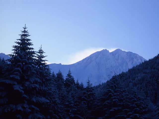 昨日の記事の続きです。冬の硫黄岳には過去何回か登っているのですが、山頂でアイゼンがぶっ壊れて写真どころではなくなったことが1回、カメラが壊れてしまい撮影できなくなったのが1回、吹雪で何も見えなかったのが1回と、実はこれまで山頂からの写真をまともに撮ったことは、これまで一度もなかったのです。だから、今回初めて、冬の硫黄岳山頂から、思う存分に写真を撮ることが出来ました。とは言っても、風が強いので姿勢が安定しないし、素手でいられる時間が限られるので、写真を撮るのも結構大変なのですが。硫黄岳山頂から見た八ヶ岳の主峰・赤岳です。盛大にガスが飛んでいます。あちらは硫黄岳よりもっと風が強そうだ。山頂での撮影の中心はフィルムの一眼レフで、デジカメではあまり撮影していません。寒さで電池の出力が低下してしまい、すぐにバッテリー切れになってしまうのです。小さなカメラなのでズボンのポケットに入れておくと、体温で暖まって、また電池が復活する。しばらく撮影すると冷え切って、またバッテリー切れ、その繰り返し。一方、フィルムの一眼レフは、元々電池の残量が少なかったにもかかわらず、安定的に撮影できました。途中でフィルムを入れ替えることもできました。もっとも、5年くらい前に、やはり冬の八ヶ岳で、一眼レフのシャッターが凍結して撮影できなくなったことがありました。だから、一眼レフといえども寒さに対して万能ではありません。今回はずっとシャッターが切れたということは、そのときよりは気温が高かったのかな。さて、山頂にはだいぶ長居をしましたが、下山にかかったら、突然風が止みました。これにはびっくり。下りはじめてすぐに、振り返って山頂方向を撮りました。登りでは、とてもカメラを出す余裕なんかなかったのですが。同じ場所から、これから下っていく(登ってきた)稜線を撮影。登山道は稜線づたいにすすみ、やや左よりの小さなピークから左下に向きを変えて、樹林帯へ下っていきます。遠景は、左側が南アルプス、右奥が中央アルプスです。風さえなければ、実に快適で、危険なところも何もない雪山です。ただ、冬場に風がないという幸運には、滅多に出会うことは出来ません。昨日の記事で、硫黄岳の写真を撮った地点(樹林帯から稜線に出たところ)まで戻ってきました。南八ヶ岳連峰を一望の下に。中央は赤岳(2899m)、右が阿弥陀岳(2805m)、左のギザギザは横岳(2829m)。登ってきた硫黄岳は、2760mです。こちらは無風ですが、赤岳・横岳方面は、まだまだ烈風が吹いているようです。阿弥陀岳と、その右奥の南アルプス。登山道は、ここから折れ曲がって樹林帯へと下っていきます。樹林帯にちょっと下ったところ。森林限界近辺なので、木の高さは低く、視界はまだまだ開けています。登山道、というか雪面上のトレースはこんな感じです。写真にしてみると、それなりに斜度がありますね。赤岳鉱泉まで戻ってきました。これは、アイスクライミング練習用の人工ゲレンデ。通称アイスキャンディー。足場を組んで、そこに放水するだけで、このとおり。(鉱泉だけあって、水はたっぷりある)でも、私はアイスクライミングはやったことがないのです。赤岳鉱泉から見上げる横岳の全景。横岳大同心と小同心。冬はアイスクライミング、夏はロッククライミングのメッカです。私は、ちょっと登れないなあ。ここから先は、北沢をひたすら下って、美濃戸→美濃戸口へ。登りは登山口からアイゼンでしたが、下りは途中までまでアイゼンなし、でもやっぱりカチカチに凍結しているところはアイゼンをつけて、しかし登山口に近づいた頃にはお昼を過ぎており、スケートリンク状だった登山道も一部ぬかるみに。アイゼンを泥まみれにしたくなくて、最後はアイゼンを外しました。そうしたら、よく滑ること滑ること。かろうじて転倒は免れましたが、一歩間違えれば、「アイゼンを泥だらけにしないためにズボンを泥だらけにしました」ってことになっていたかもしれません。中央線茅野駅まで戻ってきて撮影。ところで、今回のフィルムの一眼レフとコンパクトデジカメをもって行きました。結果的にデジカメでもそれなりの写真が撮れましたが、山での撮影、特に晴天の雪山では、ファインダーがなく液晶ディスプレイだけのデジカメは、ものすごく使いにくいというのが正直なところです。なぜかというと、周りが明るすぎてディスプレイがよく見えないのです。雪目対策でサングラスをしていることも理由の一つです。遠方の山を撮るときなんか、ディスプレイに何が映っているかも見えていない。かろうじて山のシルエットの一部が分かるかな、というくらい。ピントや露出はまったく分からないまま、とりあえずシャッターを押してみた、という状態です。下手な鉄砲数撃ちゃ当たる式に、どんどんシャッターを切るしかないのですが、前述の通り、低温のためバッテリー(単三のエネループ使用)