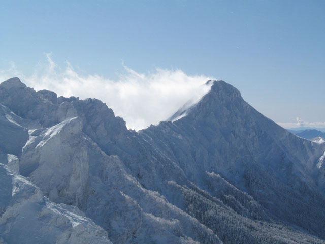 1泊2日の日程で、八ヶ岳に行ってきました。行き先は赤岳!と言いたいところですが、私の冬山登山の実力では、赤岳は少々手に余ると思われるので、過去何回も登ったことのある、冬山入門コースではありますが、硫黄岳にしました。実は、赤岳鉱泉ブログによると、2月7日に赤岳鉱泉で雨が降ったというのです。2月ですよ、しかも赤岳鉱泉の標高は2000mもあります。とんでもない異常気象です。もちろん、そのあとは普通に氷点下の気候ですから、解けた雪はみんなカチカチの氷になる。美濃戸口の登山道入り口は、「ここは山か、スケート場か」というくらい、雪ではなく厚い氷に閉ざされていました。とてもアイゼンなしでは歩けない。八ヶ岳で、登山道の入り口からアイゼンをつけるなんて、初めての経験です。もっとも、この登山道は途中まで車が入れるので、普段でも雪が硬く凍結して滑りやすいことが多いのですが。天気は、晴れたり曇ったり、でも山頂付近は昨日の時点では雲に閉ざされていました。美濃戸からは南沢に入り、行者小屋へ。先々週引いた風邪の影響か、体力が若干落ちているようで、登りがきついこときついこと。これは、行者小屋の直前あたりです。このあたりは、さすがに雪が解けたような気配は感じられませんでした。横岳大同心・小同心がガスにかすんでいます。これも行者小屋付近から。ちなみに、行者小屋は今の時期は営業していません。で、このあと、予定では赤岳鉱泉の山小屋に行くはずでした。行者小屋から赤岳鉱泉までは1時間もかからないはずなのですが、行けども行けども着かない。行者小屋でおやつを食べたら脚力が回復して、結構ハイペースで登っているのに、どういうことだ。というか、行者小屋から、こんなにひたすら登りばっかりだったっけ?おかしいなと思った瞬間、目の前に梯子と鎖場が。さすがに道に間違えたことに気がつきました。地蔵尾根をひたすら赤岳に向かって登っていたのです。なんと40分も登っていた。もっと早く気づけって話ですが。一瞬、このまま登って今夜の泊まりは赤岳展望荘にって考えが頭をよぎりましたが(赤岳展望荘は昨日から営業開始)、赤岳鉱泉に予約を入れているので、そういう訳にもいきません。あわてて引き返して、行者小屋から正しい道を赤岳鉱泉へ。結局、赤岳鉱泉にたどり着いたのは4時半頃。危ない危ない。赤岳鉱泉の山小屋は、過去に何回か使ったことがありますが、食事はおいしいし、室内の暖房も暖か。春~秋の時期なら、何と風呂まであるのです(もっとも、私は冬しか泊まったことがないので、風呂に入ったことはありませんが)。とてもサービスのよい山小屋です。さて、夜中から明け方にかけては、ずっと空は雲に閉ざされていて、「こりゃ、天気はあまりよくないかな」と思ったのですが、いざ日が出てみたら快晴になりました。気温は、やや暖かめ。(7時頃、小屋の玄関の温度計でマイナス10度)赤岳鉱泉から見た赤岳。山頂から左に下る稜線上に、赤岳展望荘がよく見えます。赤岳のアップ樹氷この先で、ニホンカモシカがいたのですが、残念ながらカメラを出す前に逃げられました。森林限界を超え、硫黄岳に続く稜線上に出ました。樹林帯は無風でしたが、稜線に出たとたん、猛烈な風。もっとも、日本の冬山では、これが普通です。冬の八ヶ岳には過去何回も登っていますが、1~2回の例外を除き、いつも風は強烈。硫黄岳です。以前にも写真をアップしたことがあるような。同じ場所から南アルプスを撮影。右から仙丈岳・甲斐駒ヶ岳・北岳。この先は、強風のため山頂までカメラを出す余裕なし。ただ、技術的には、南八ヶ岳で一番易しいコースだけに、危険なところはまったくありません。前にも何度か登っているし。山頂に着きました。山頂も烈風ですが、だだっ広いのでカメラを出す余裕がありました。冬の硫黄岳には何度か登っていますが、山頂でゆっくり写真が撮れるのは初めてです。山頂から中央アルプスを撮影。ちなみに、赤岳方向も盛大にガスが飛んでいました。その飛び方から察するに、硫黄岳よりもっと風が強そうです。続きは明日に。