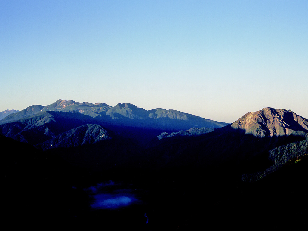 先週登った前穂高岳の、リバーサルフイルムの写真が、やっと完成しました。岳沢を朝5時半少し前に歩き始めた直後の写真です。当初は5時に出発しようと思っていたのですが、朝食やテント内の整理などに手間取って、30分近く遅れました。テント内は狭いし、テントと山小屋は離れている(水場とトイレは山小屋にある)ので、どうもテキパキとは行きません。でも、5時にはまだ夜が明けていなかったけど、5時半には明るくなっていたので、結果的にはこの時間に歩き始めて正解だったかもしれません。10分か15分歩いたところで、ちょうど夜明け。右手前が焼岳で、奥が乗鞍岳です。その左奥、写真の左端に木曽御嶽山が見えます。上の写真より更に少し登ったところからの撮影です。右手前が乗鞍岳、左奥が木曽御嶽山です。この時間は、下界には雲があるものの、上空は雲一つない快晴。だいぶ登ってきました。西穂高岳です。写真左端の小ピークが独標。ここまでは登ったことがあります(そこまでが初心者コース)。さすがに、まだ紅葉はしていません。紀美子平に着きました。ここから山頂までは30分かからないくらいです。どうも、このあたりの日の差していない場所での撮影は、リバーサルフィルムよりiPad miniのほうが上手く撮れています。いつもは、同じ場所で露出を変えながら何枚か撮るのですが、このときはフィルムをケチって、全部補正なしでしか撮影していません。露出が空の明るさにあってしまうと、山肌が真っ黒になってしまいます。(この写真はフォトショップで補正してありますが、色調に若干無理が)山頂に到着しました。8時過ぎ頃です。岳沢のテント場から山頂まで、およそ2時間40分くらいでした。標高3090m。眼前には穂高連峰の絶景。左手前が奥穂高岳、右奥が涸沢岳、その間に穂高岳山荘、そこから下るザイテングラードの登山道も見えます。手前が北穂高岳、奥が槍ヶ岳です。今回撮った写真の中で、私自身はこの写真が一番気に入っています。涸沢から北穂高への登山道が写っています。それほど難しい山、という記憶はないのですが、こうやって見ると、結構な斜度の登山道です。槍穂高連峰の全景です。穂高を「岩の殿堂」なんて呼ぶことがありますが、実際こうやって見ると、緑が少なくと、ごつごつと岩だらけの山です。眼下には上高地と梓川、それに焼岳がよく見えます。この時間(8時20分か30分頃)早くも雲が湧き始めています。梓川の、上高地より上流部分です。横尾付近と、その向こうに蝶ヶ岳。いよいよ雲が広がり始めています。焼岳、乗鞍岳、木曽御嶽山。雲に隠れ始めているのが霞沢岳。焼岳がはるか下に見えます。槍ヶ岳と、その東側、大天井岳に連なる東鎌尾根です。ちょっと分かりにくいのですが、登山者のヘルメットの右側に殺生ヒュッテが見えます。(山の名前には、仏教にちなんだものが多いのですが、それにしたって「殺生ヒュッテ」とは、また怖い名前をつけたものです)下山開始です。岳沢がはるか下に見えます。下りは、岳沢までだいたい2時間半か2時間40分くらいで下りました。と、いうことは、登りと下りで所要時間がほとんど変わっていない。登りはコースタイムより1時間近く速いのに、下りはコースタイムよりやや遅いくらい。下りは途中でケーナを吹いて、あれで15分くらいは余計な時間はかかっていると思うので、それを除いてちょうどコースタイム並み、というところです。登りは、体力の許す限りいくらでもペースを上げられるけど、下りは転倒の危険を考えると、いくらでもスピードを出す、というわけには行きません。それに、私が下っている時間帯に登ってくる登山者がものすごく多くて、行き違いの待ち時間が長かったことでしょう。でも、私は登りは結構速いけど、下りはあんまり速くない、という傾向はあります。斜度がきついところほどそうです。西穂高岳。登りの途中で撮った写真と比べると、雲がずいぶん増えていることがわかります。「穂高」と名が付く山は、奥穂高・北穂高・前穂高・西穂高の4つありますが、このうち、最後に残った未踏の山が西穂高になりました。この山は3000mに届かないのですが、4つの穂高の中では難易度はもっとも高い山です(もっとも一般的なルートで山頂を目指した場合の比較)。でも、前穂高より難しいようですが、はるかに難しい、というわけでもないようなので、私に登れないことはない、と思います。今年か来年、登頂を目指すことにします。西穂高から先(奥穂高への縦走ルート)は、私にはちょっと無理かな。ここを歩くのは、うちの子が成人してからにしておきます。岳沢近くまで下ってきました。トリカブトの花期は8月末から9月なのですが、それにしてもこの一帯はトリカブトだらけ。岳沢から前穂高岳への往復は、荷物を最小限(水は1.5リットル、食料、一眼レフとiPad mini、上着と一応は雨具、それにケーナ、荷物の重さは量っていないけど、全部で3キロか4キロくらい)にした