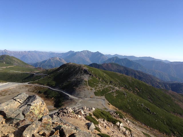 せっかくの3連休なので、また山に登ってきました。ただし、台風が迫っているため、夜行日帰りにしました。(結果的に、明日まで天気は大丈夫そうなのですが、明日は別の用事を入れてしまいました)行き先は、日本の3000m峰の中でもっとも簡単に登れる山、乗鞍岳です。標高3026mですが、海抜2700mの畳平まで乗鞍スカイラインと乗鞍エコーラインという2つの自動車道があり、バスで簡単に行くことができます。夜行バスで平湯温泉まで行って、そこで始発のバスを待って、畳平着が朝7時半過ぎ。まずは剣が峰を目指します。が、途中に富士見岳という支峰(2817m)があったので、そっちに寄ってみました。正面に、槍穂高連峰が見えます。先月登った前穂高岳と岳沢が目の前にそびえています。その左手前の低い山が焼岳です。先の写真の左側です。畳平の駐車場と、その向こうに恵比寿岳(左側の高い方)と魔王岳(右側の低い方)。恵比寿岳は登山禁止とのことです。魔王岳は登れるようです。明らかに噴火口です。目指す剣ヶ峰3026m。何しろ出発点の標高が高いから、山頂も目の前です。火山なので、カルデラ湖がいっぱいあります。これは、確か権現池だったと思います。一番山頂に近い池です。日本で一番標高の高い池、だったと思います。(御嶽山の一ノ池の方が高いのでは?とも思うのですが、御嶽山の一ノ池はほとんど水がないので)で、あっという間に山頂に着いてしまいました。山頂着は9時。歩き始めたのが7時40分過ぎでしたから、富士見岳に寄り道した時間も含めて、1時間20分で山頂に着きました。富士見岳からの写真と同じアングルです。北アルプス・槍穂高連峰が眼前に広がっています。天気が良くて、最高です。左側の建築物は、国立天文台の旧コロナ観測所(現在は、コロナ観測の機能は止まっている)です。そして、この写真の反対側には・・・・・・御嶽山です。この写真ではちょっと分かりにくいですが、噴煙が上がっています。写真を原寸大のまま、御嶽山の山頂部分だけトリミングしました。これだと、噴煙がはっきり分かります。山頂に40分ほどいた間に、もっと盛大に噴煙が上がることもありました。消防・警察・自衛隊が今日も行方不明者の捜索(実質は遺体の回収)をしているますが、実は噴火が収まったから捜索しているのではなく、収まっていないけど捜索をしているのです。もちろん、9月27日に比べれば噴火の規模は小さいのでしょうが、噴火口直近での捜索などは大丈夫なのかな、と思ってしまいます。ま、でも焼岳なんかも常時噴煙が上がっていますが、登山禁止になっていないですけどね(南峰のみ登山禁止)。山頂にはだいぶ長居をして、9時40分頃に下り始めました。が、しかし畳平からの登りが、途中寄り道を含めて1時間20分。下りは果たして何分?このまま畳平に下ったら、もはや登山じゃなくて散歩だよね。実際、畳平から山頂までの標高差約320mは、東京の高尾山(山頂が約600m、京王線高尾山口駅196m、標高差約400m)より小さいのです。これだけで終わってしまってはあんまりなので、畳平に戻るのではなく乗鞍高原まで歩いて下ることにしました。と、書くと、山頂で決めたように見えますが、もちろん実際は登る前からそうしようと考えていました。もう一つ、森林限界から上は紅葉は完全に終わっていて、ダケカンバなどの落葉樹は、葉はすべて落ちていました。もっと標高の低いところに行かないと、紅葉は見られないのです。登山道がエコーラインとぶつかるところ(肩の小屋口)で、山頂方面を撮りました。雪渓のところには、何人か人がいたようです。雪遊びか、雪上訓練か、スキー?(数十メートルの広さしかないですが)11月中には次の根雪がつくだろうと思いますけどね。標高2300mあまりの位ヶ原山荘まで降りてきました。ここでも、紅葉はほぼ終わっていました。エコーラインを自転車で登っている人が、結構多かった。あれは登山よりきついでしょうね。その代わり、下りは登山より楽に違いない。更に下って、標高1500か1600mくらい。紅葉が見事でした。スキー場のリフトの脇なんですけどね。更に、乗鞍高原の観光センター前(標高約1500m)まで下って、そこからバスに乗りました。結局、くだりの標高差は1500m以上でした。乗鞍高原からのバスも、新島々で松本電鉄に乗換え。9月14日に前穂高岳に登った際も使ったので、1ヶ月間で2度松本電鉄(アルピコ交通)を使ったことになります。また、例によってリバーサルフィルムの写真ができたらアップします。ただ、フィルムが2本にまたがっていて、2本目はまだ撮り終えていないので、これはだいぶ先の公開になるかもしれません。