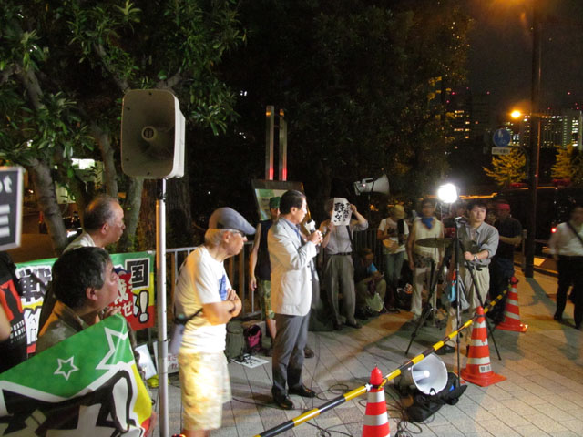 実は、昨日も今日も国会前に行ってきました。今日は、仕事がちょっと遅かったので、国会前に行ってすぐ帰ってきましたが。昨日は、国会前でケーナの練習をしてきましたよ。今日は写真は撮ったのですが、照明のないところで真っ暗な写真しか撮れなかったので、写真は昨日のものだけです。首相官邸前。このあたりは数百人程度しか人がおらず、今日は少ないのかな、と思ったのですが・・・・・これも首相官邸前奴はここにいる・・・・・・わけではないようですね。首相官邸ですが、実際には安倍はここに住んでいるわけではないようです。規制線だらけで、思うように動けないのですが、だいぶ大回りして国会正面に出たら、そこには大勢の人がいました。通せ、通さないで警官と押し問答になっていました。私としては、抗議行動は抗議行動として、まあ警官隊も大変だなあと思います。国会正面。ここには大勢いました。安保法制断固反対!!警察の指揮車は、デモ隊に取り囲まれています。こんな人も多いところでケーナを吹く肝っ玉はないですが、その手前、人がほとんどいないところで4曲ほど練習してしまいました。ところで、こんな報道もあります。「来年夏までには国民も忘れる」 参院選、米との公約優先した強行可決首相は4月末の米議会演説で、安保法案を「この夏までに必ず成就させる」と宣言しており、今国会成立を断念すれば日米同盟が揺らぐ。反対論が強い安保法案を来年に先送りすれば、夏の参院選を直撃する懸念もある。~ただ、採決強行が支持率にどの程度影響するかは読み切れない。官邸内では「たとえ10ポイント程度下げても、(参院選がある)来年夏までには国民も忘れる。経済が良ければ回復する」(高官)と強気の声が支配的だが、一部世論調査では支持率と不支持率が逆転しており、弱含みだ。---国民の賛同も得ないのに米国で「夏までに成立させる」などと大見得を切って、それを実現しようと暴走し続ける、つまり安倍にとっては民意より米国の意向が大事、ということです。国民の命を守るためではなく、米国の忠実な下僕となるための集団的自衛権です。加えて、「たとえ10ポイント程度下げても、来年夏までには国民も忘れる。」ですか。国民は健忘症だとなめられたものです。