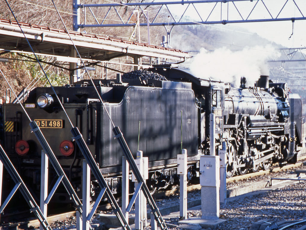 2週間前の写真ですが、やっとパソコンに取り込んだのでアップします。昨年も同じ成人の日の3連休に来たら、C61の運転をしていましたが、今年はD51でした。雪がないので秋みたいですけど。D51は、1180両以上製造され、日本の蒸気機関車としては(電気機関車・ディーゼル機関車を含めても)最大の製造数を誇ります。その大半は、戦時中の軍需輸送用に作られたものです。同じく、より大型で強力なD52型も戦時中に280両あまり製造されています。が、しかし、ドイツは戦時中に50型蒸気機関車3000両以上、52型6000両以上を製造しています。それだけでも、当時のドイツと日本でどれだけ生産力に差があったか一目瞭然です。しかも、そのサイズとパワーもD51/D52より大型で強力です(ドイツは標準軌、日本は狭軌なので仕方のないことではあるが)戦前戦中に作られたD51の機関室は、むき出しの開放型です。現在は、さすがに危ないので写真のように開口部に覆いが付いていますけど。水上温泉から宿に向かう途中で谷川岳方面を撮影。水上に雪は皆無でしたが、さすがに山には雪がありました。翌日、土合駅で地上に出たところから。谷川岳のはずです。位置によっては、こんなに鋭角的な山に見えるんですね。この時間は、こんなに晴れていました。土合橋から白毛門に向かって登っていくうちに、山頂が見えました。まだまだ晴天です。山頂がいよいよ近づいてきましたが、雲行きはちょっと怪しくなってきました。もっとも、この写真では暗く写っていますが(明るい写真は雪の陰影が潰れて、稜線が雲と区別が付かなくなってしまいます)、実際はこのときはまだ晴れ間もあって日差しも出ていました。山頂に到着。残念ながら、空は厚い雲に覆われてしまいました。実際はもうちょっと明るかったけど、ともかくもう日差しはありませんでした。谷川岳の一ノ倉沢の大岸壁を目の前にしているのですが、雲に阻まれてほとんど見えません。上州武尊山です。この山も、いつかは登りたいなあ。天気もこんな状態になってしまったため、今回は写真はこのくらいです。それにしても、リバーサルフィルムの写真をやっとパソコンに取り込みましたが、まだプリントした写真にはなっていません。その前、年末に行った上高地の写真も同じ状態です。紙焼きにしていないポジがたまり始めてしまいました。次に撮影したときに、まとめてプリントします。が、最近リバーサルフィルムの手間に、私が対応できなくなりつつあります。現像に出す・完成したポジを引き取って、その場でライトボックスで確認してプリントに出す・そのプリントを引き取る。1本のポジフィルムをプリント写真にするのに、3回写真屋に行く必要があります。リバーサルフィルムには同時プリントというものがないので、手間と時間がかかる。プリントをサボっているのは、何本もまとめてプリントに出せば、写真屋に行く手間が何回分か省けるから、という理由もあります。とりあえずポジがあればパソコンに写真は取り込めるし。しかし、こうなってくるとポジフィルムで撮影する意味が乏しくなってきます。パソコンに取り込むだけならデジカメのほうがが速くて画質が良いに決まっているわけで。しかも、このところ、現像したポジに、妙に反っている部分があるのです。おそらくそのせいで、スキャナで読み込む際に、一部の写真にノイズが載っています(アップした中では下から3番目の写真)。読み込みの際にフィルムが完全に平らになっていないためでしょう。もともとのフィルムのせいか現像時にそうなったのか分からないですけど。さすがに、そろそろデジタル一眼レフを買おうかな、なんて思案中です。もちろん、そうなったとしてもフィルムカメラでの撮影を完全にやめはしないですけど。