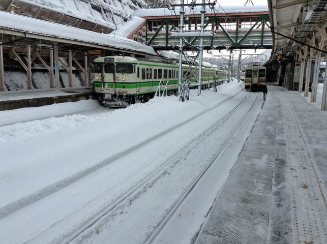 今日の東京は寒くて、初雪が降ったそうです。もっとも、積もるほどの降り方ではありませんでしたが。しかし、この冬は、これまでのところ大変な暖冬です。各地で雪の量が極端に少なくなっているようです。昨日まで2泊3日で旅行に行った水上温泉も例外ではありません。昨年の同じ時期と、同じ場所での積雪量を比較してみました。まずは、上越線水上駅です。去年、2015年1月12日の水上駅今年、2016年1月10日の水上駅水上温泉の宿から、谷川岳方面を撮影してみました※この写真は一昨年です。2014年1月12日水上温泉の宿から撮影町は雪景色、家々の屋根には雪が積もっています。今年2015年1月10日水上温泉の宿から撮影遠方の山には雪がありますが、町並みに雪はまったくありません。土合駅去年、2015年1月11日の土合駅積雪は車より高い。駅舎に登る階段は、幅1.5mくらいだと思っていたのですが・・・・・・今年、2016年1月10日の土合駅何と、こんなに幅の広い階段だったとは。土合駅前の駐車場去年、2015年1月11日の土合駅前駐車場足元がカチカチに凍っていて、滑りやすかった。(まさかこんな場所でアイゼンは使えないし)今年、2016年1月10日の土合駅前駐車場ここは、今年も朝は凍結していたので、ちょっと滑りやすかったです。駅から土合橋・谷川岳ロープウェー方面にちょっと歩くと、上越線の上り線踏切を越えます。去年、2015年1月11日の土合駅踏切ロータリー車が何度も除雪したのだろうと思われます。今年、2016年1月10日の土合駅踏切除雪車の出る幕は、なさそうです。土合駅上りホーム(下りホームは、昨日の記事のとおり地下なので、雪は関係ありません)去年、2015年1月11日の土合駅上りホーム列車が止まる範囲のホームは、ちゃんと除雪されています。今年、2016年1月10日の土合駅上りホーム除雪しなくても、ホームに雪はありません。(と、いうのはウソです。ホームの先端には1~2cmの積雪はありました)あまりの違いにびっくりです。雪が少ないと、まず冬山好きの登山者は困ります。もっとも、一昨日私が白毛門に登れたのは、雪が比較的少なくて(それでも、山頂は1m程度の積雪はあったはずですが)、雪の上にトレースが付いていたからです。昨年はトレースがなくて、ラッセルの挙句に途中敗退しました。それから、スキー場関係者が困ります。もちろんスキーヤーも困ります。そしてもう一つ、冬の積雪は春の雪解け水になります。雪が少ないということは、春の雪解け水が少ないということであり、つまり今年の春先以降の深刻な水不足につながる可能性があります。もっとも、このまま冬の間中暖冬で雪不足が続くのかどうかは定かではありません。去年と一昨年の夏は、強烈な猛暑で始まったものの、途中から雨が増えて涼しい夏になりました。2013年の冬は全国的に厳冬で、青森県の酸ヶ湯温泉で566cmの積雪記録が観測されましたが、3月は記録的な暖かい春となりました。だから、この冬も、これから先もずっと暖冬とは限らない、かも知れません。ただ、気象庁の3ヶ月予報では、3月まで暖冬っぽいのですが。
